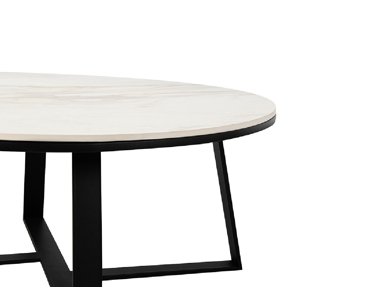 Detta tidlösa, moderna designerbord skapar en elegant känsla i rummet. Basen är synlig från sidan och är gjort av matt, pulverlackerat rostfritt stål. Bordsskivan är av blankputsad keramik som imiterar marmor.