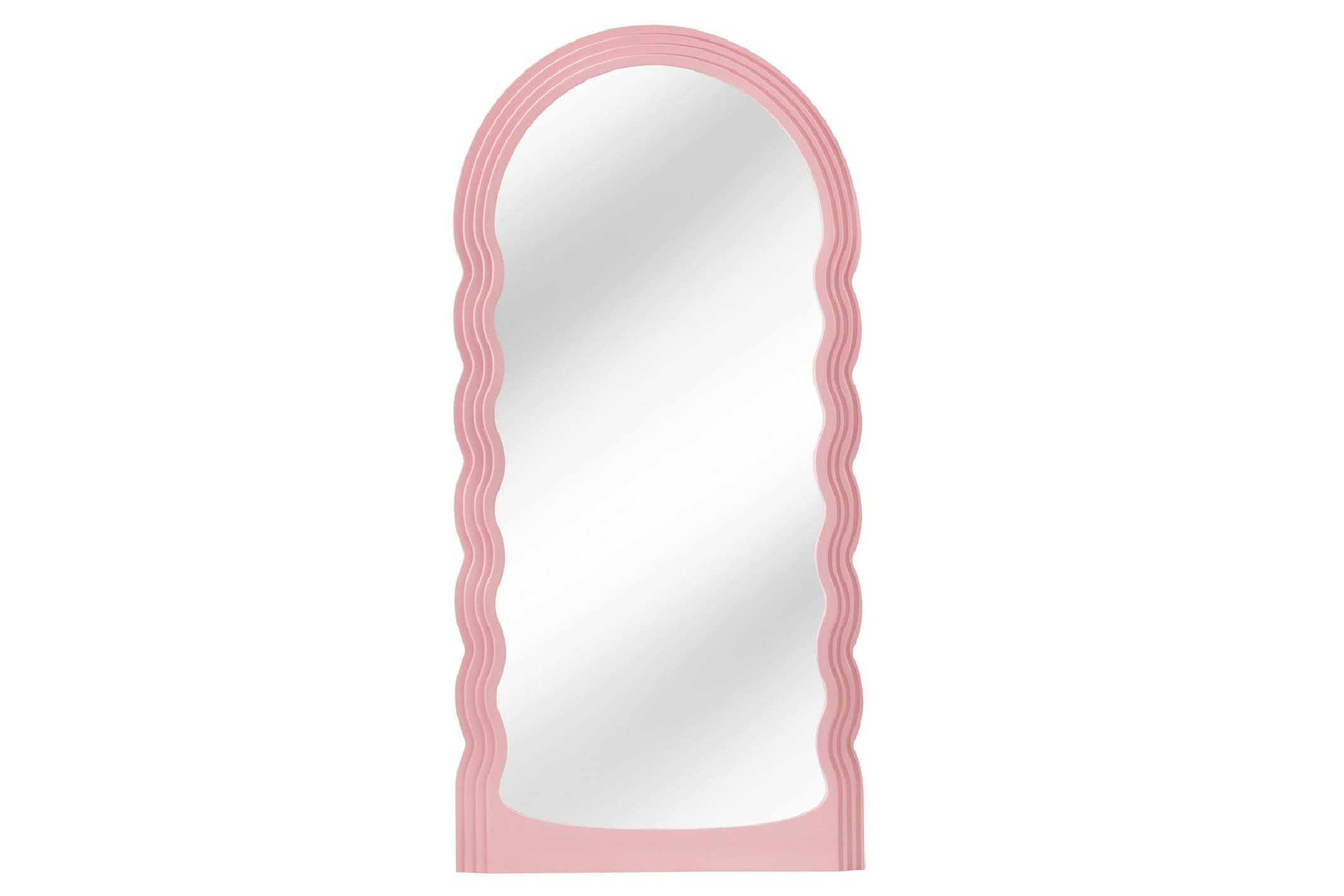 AURORA väggspegel förvandlar din vägg till ett konstverk med sina mjuka vågformer och rosatonade elegans. Den generösa höjden ger rummet ljus, rymd och en lekfull men sofistikerad känsla. Denna stilrena väggspegel har en dekorativ ram i formsprutad polyuretan runt en stadig stomme i MDF och högkvalitativt spegelglas. Kombinationen av vågformad design och rosa finish gör den till ett perfekt blickfång ovanför byrå, i hallen eller som trendig helkroppsspegel i sovrum och vardagsrum. En modern väggspegel som förenar design och funktion – idealisk för dig som vill lyfta inredningen med en unik spegel. Mått (BxHxD): 80 x 160 x 4 cm Vikt: 11.6 kg