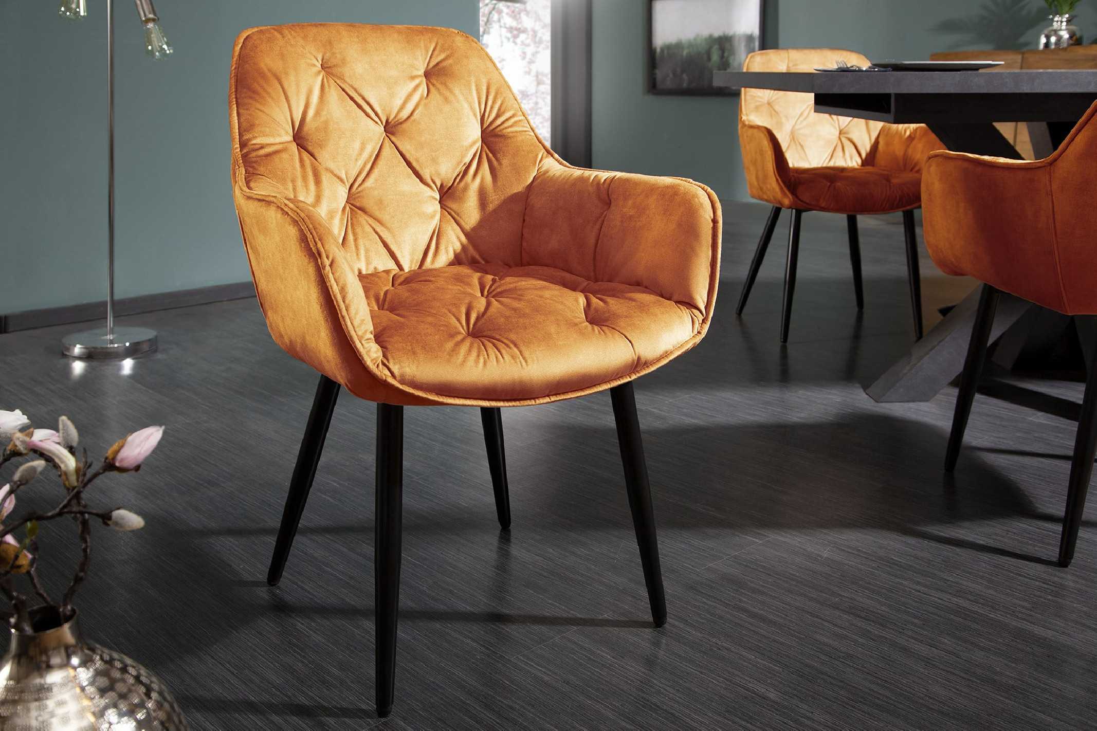 VEGA är en elegant matstol i senapsgul sammet som omedelbart lyfter ditt matrum. De mjuka formerna och de bekväma armstöden bjuder in till långa middagar och samtal i en varm, sofistikerad atmosfär. Klädd i len sammetsklädsel av 100% polyester erbjuder denna sammetsstol en mjuk och inbjudande sittupplevelse som är både slitstark och lättskött. De stilrena metallbenen ger en modern kontrast till den varma färgen och skapar en luftig, nätt känsla runt matbordet. Perfekt som matstol med armstöd i kök eller matsal, men fungerar lika bra som extrastol i vardagsrum eller hemmakontor. Mått (Bredd x Höjd x Djup): 59 x 84 x 62 cm