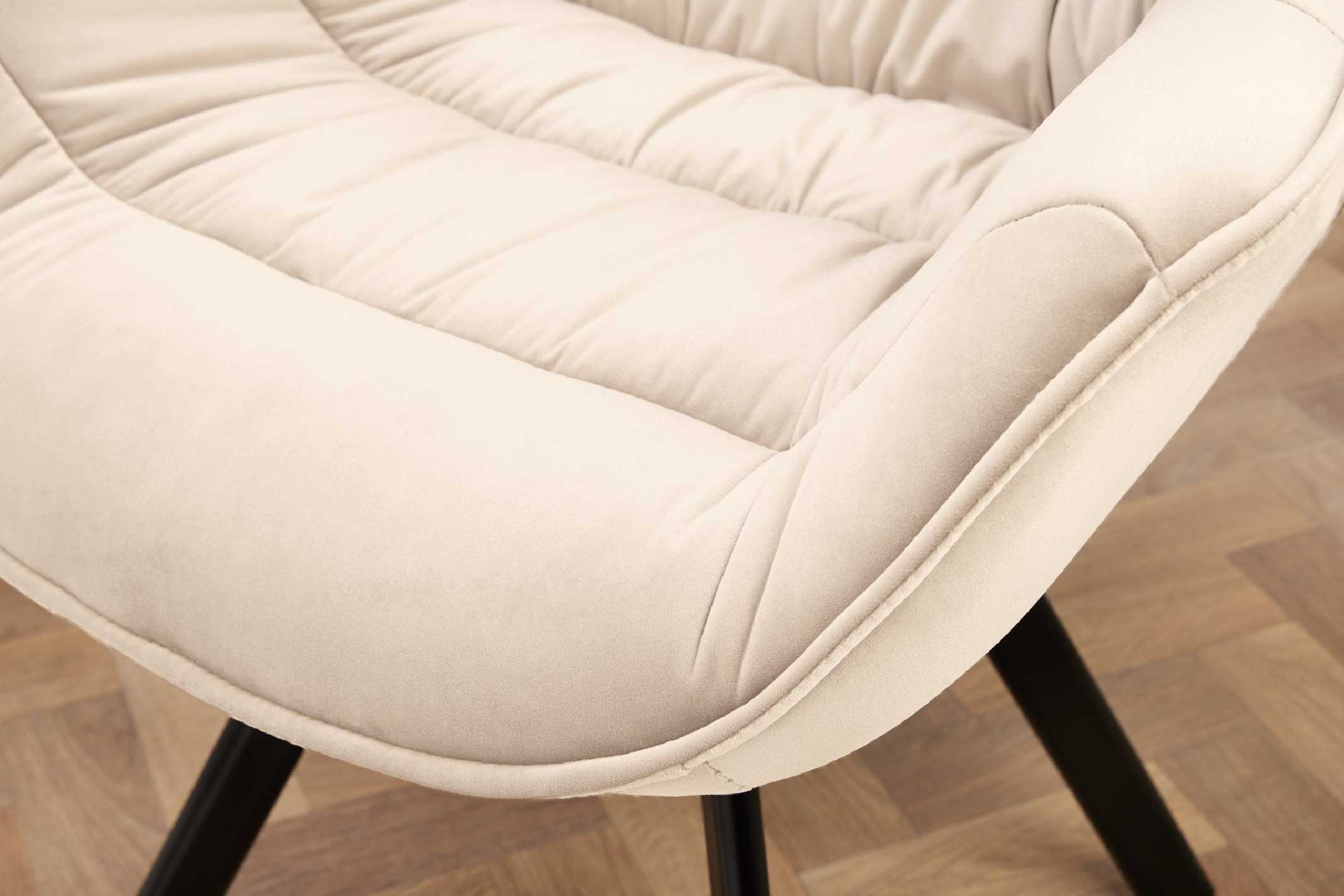 Aurora förvandlar varje arbetsplats eller loungehörna till en elegant oas med sin stilrena siluett och mjuka sammetsklädsel. Den varma champagne beige färgen ger ett sobert, lyxigt intryck som samtidigt känns inbjudande och avslappnat. Denna snurrstol i sammet kombinerar 180° roterbar komfort med ett stabilt underrede i svart pulverlackerad metall, vilket gör den både stilfull och hållbar för dagligt bruk. Den lena sammetsytan i 100% polyester är lätt att sköta och ger en behaglig sittkänsla under långa stunder vid skrivbordet eller i loungen. Aurora är en modern kontorsstol/loungestol med genomtänkt ergonomi, perfekt som designstol i hemmakontor, vardagsrum eller hotellmiljö. Mått: Bredd 64 x Höjd 80 x Djup 62 cm Sitt höjd: 49 cm Sittyta: 38 x 44 cm Ryggstödets höjd: 39 cm Höjd armstöd: 16 cm Avstånd golv till armstöd: 63 cm
