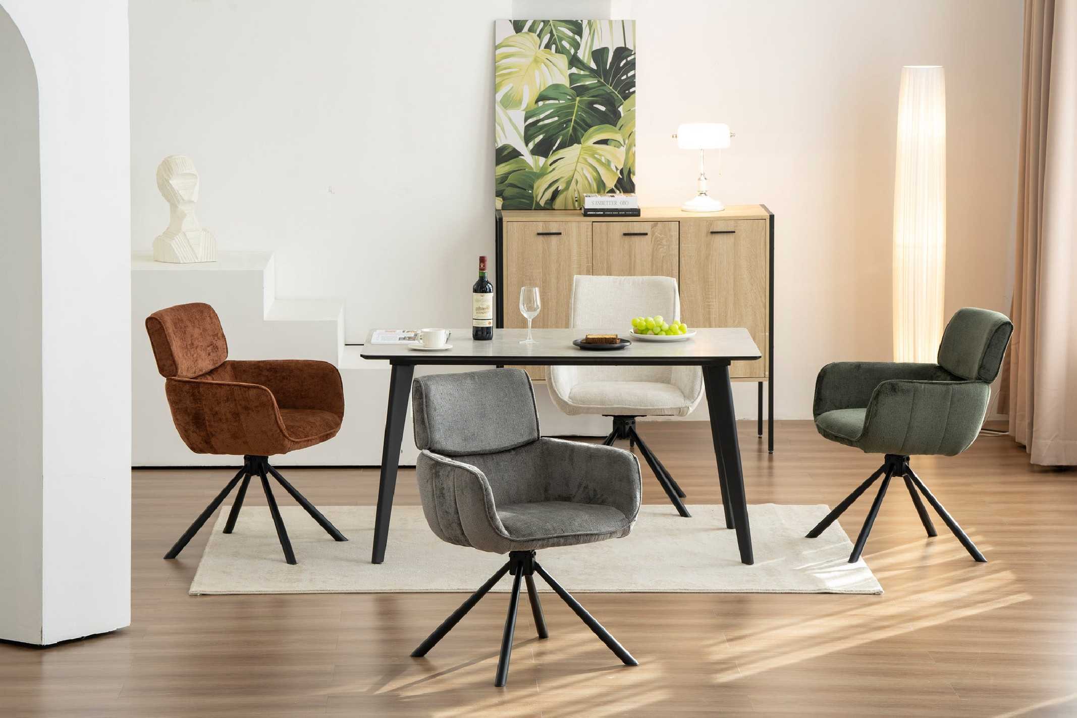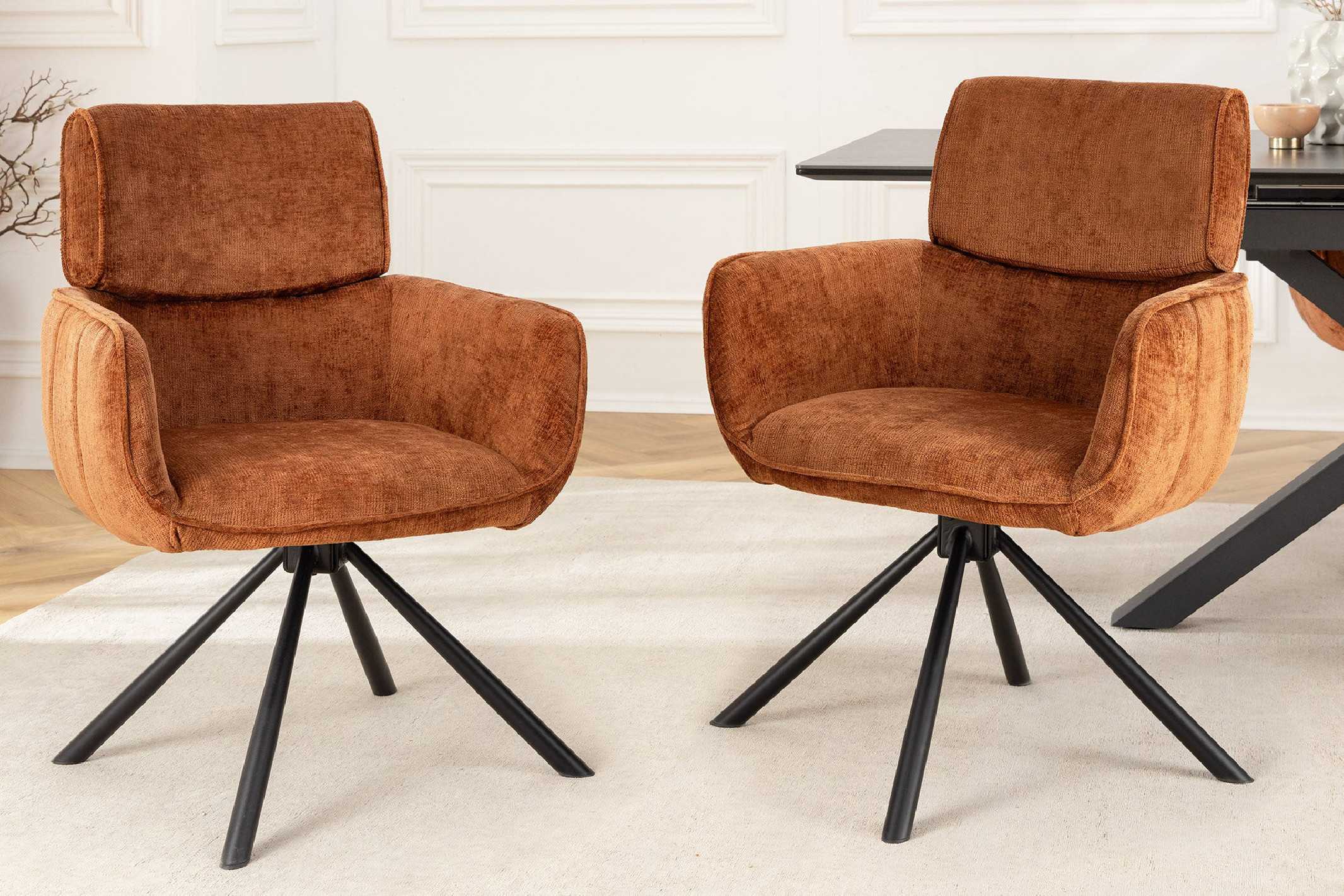 ARCTURUS snurrstol förvandlar ditt hem med sin eleganta siluett och varma rostbruna ton. Den mjuka chenilleklädseln bjuder in till långa, avslappnade stunder vid matbordet eller skrivbordet, samtidigt som 180° snurret ger fri rörelse och modern funktionalitet. Stolen är klädd i slitstark chenilletyg (100 % polyester) som kombinerar en lyxig känsla med hög vardagstålighet – perfekt som matstol, kontorsstol eller accentfåtölj. De svarta benen skapar en stilren kontrast mot det rostbruna tyget och ger ett stabilt intryck. Med generös maxbelastning på 120 kg, bekväma armstöd och ergonomiskt format ryggstöd får du en snurrstol som förenar design och komfort. En idealisk snurrstol med armstöd för moderna matplatser och hemarbetsplatser. Mått: Bredd 61 x Höjd 84 x Djup 64 cm Sitthöjd: 47 cm Höjd ryggstöd: 43 cm Sits: 42 x 43 cm Avstånd golv till armstöd: 64 cm Höjd på armstöd: 18 cm Max. belastning: 120 kg Nettovikt: 10.11 kg