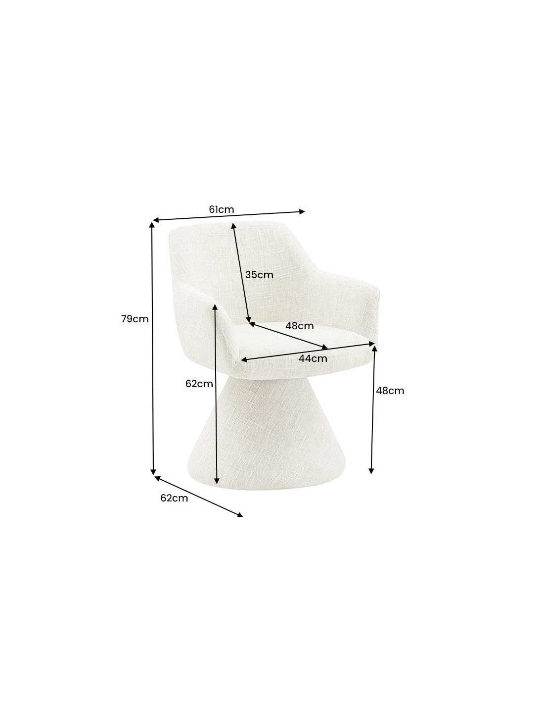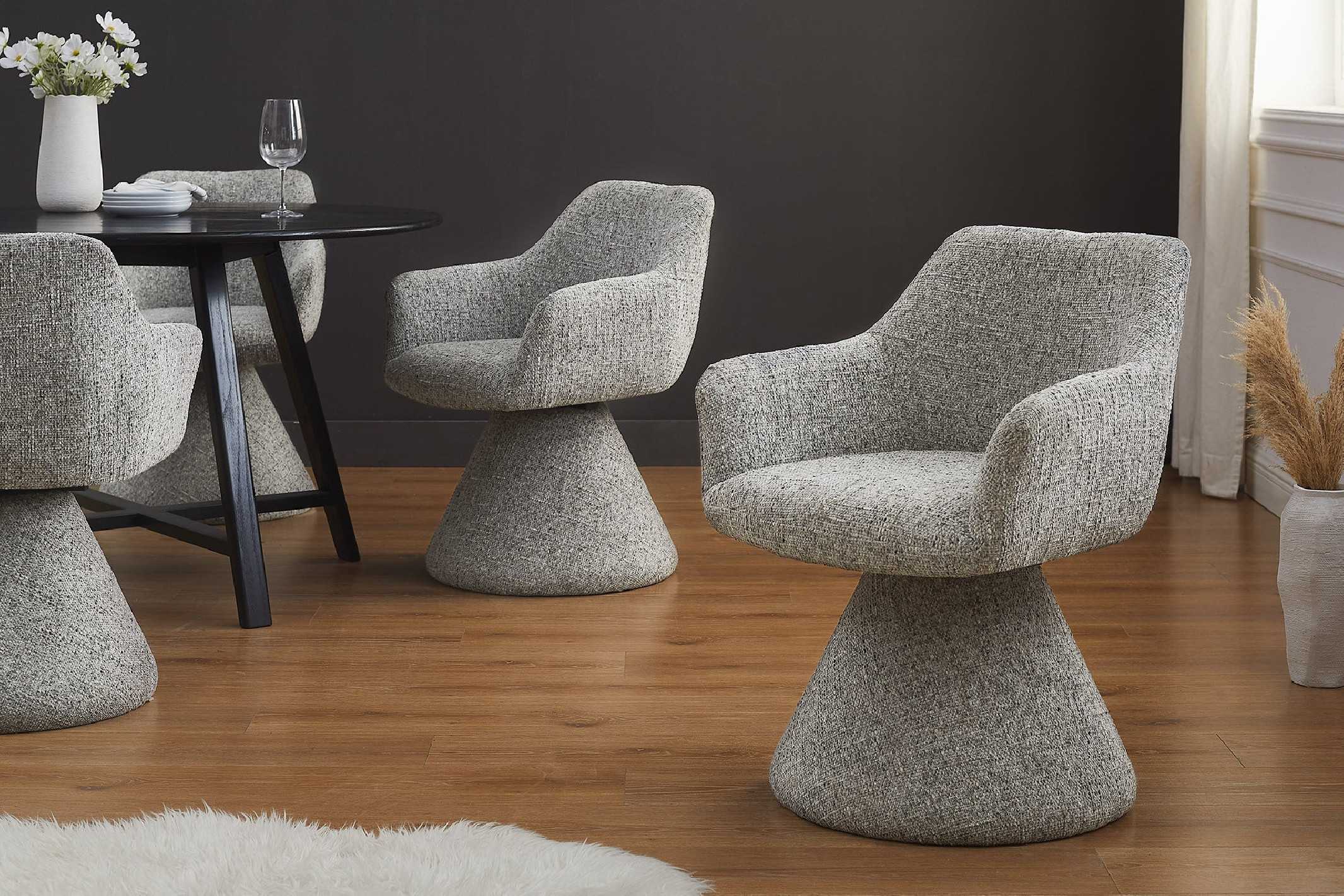 POLARIS snurrfåtölj i grå chenille ger en omfamnande sittupplevelse med modern loungekänsla. Den kompakta designen passar perfekt vid skrivbordet, i läshörnan eller runt matbordet och lyfter enkelt hela rummet. Det mjuka chenilletyget i grått ger en varm, taktil känsla och är samtidigt slitstarkt nog för vardaglig användning. Den 180° snurrfunktionen med auto-return gör att stolen elegant vrider tillbaka till utgångsläget – idealiskt för ett stilrent och ordnat intryck. Stadig stomme i syntetmaterial och järnträ ger stabilitet upp till 120 kg, medan generösa armstöd och ergonomisk sitthöjd på 48 cm ger skön komfort under långa stunder. En perfekt svivelfåtölj för både hemmakontor och matplats. Mått: Bredd x Höjd x Djup: 61 x 79 x 62 cm Sittyta: 44 x 48 cm Sitt höjd: 48 cm Ryggstödets höjd: 35 cm Armstödets höjd: 17 cm Avstånd golv till armstöd: 62 cm Max. belastning: 120 kg Vikt: 10.25 kg