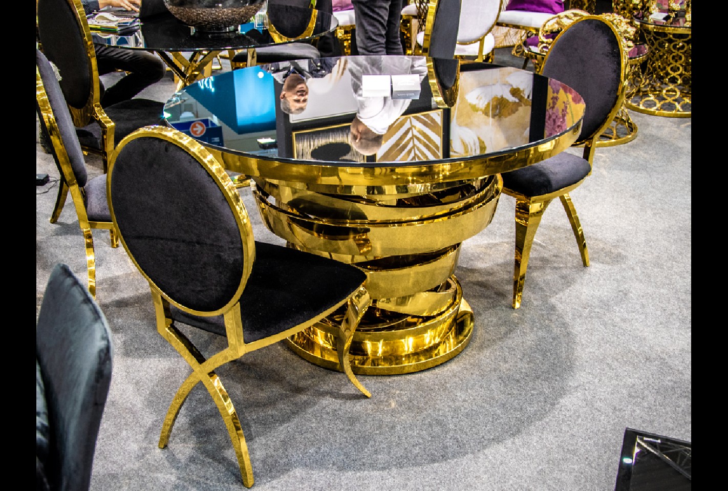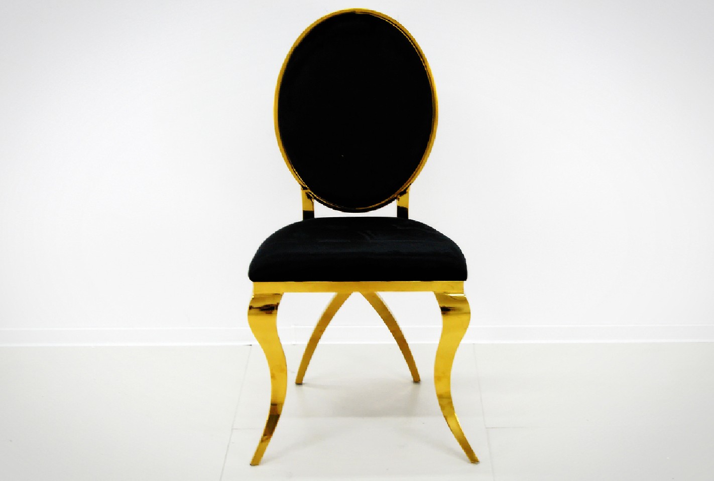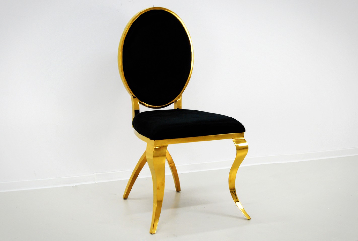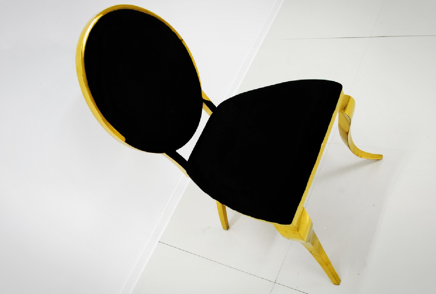GULD/SVART MATSTOL I POLERAT STÅL/VELOUR
