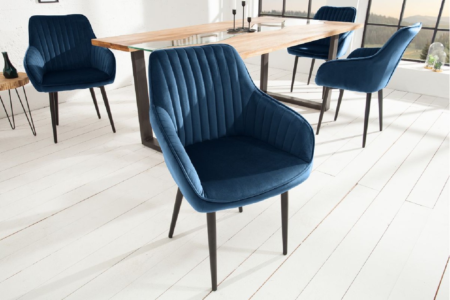 BLÅ RETRO MATSTOL I SAMMET
