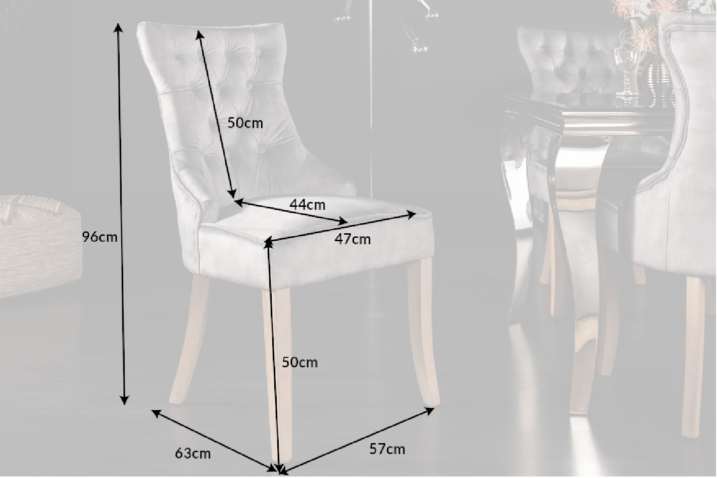 stol i grå sammet med handtag
