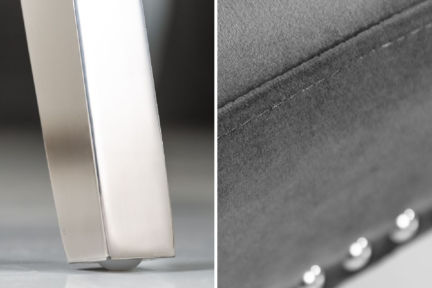 Stol i grå sammet/rostfritt stål