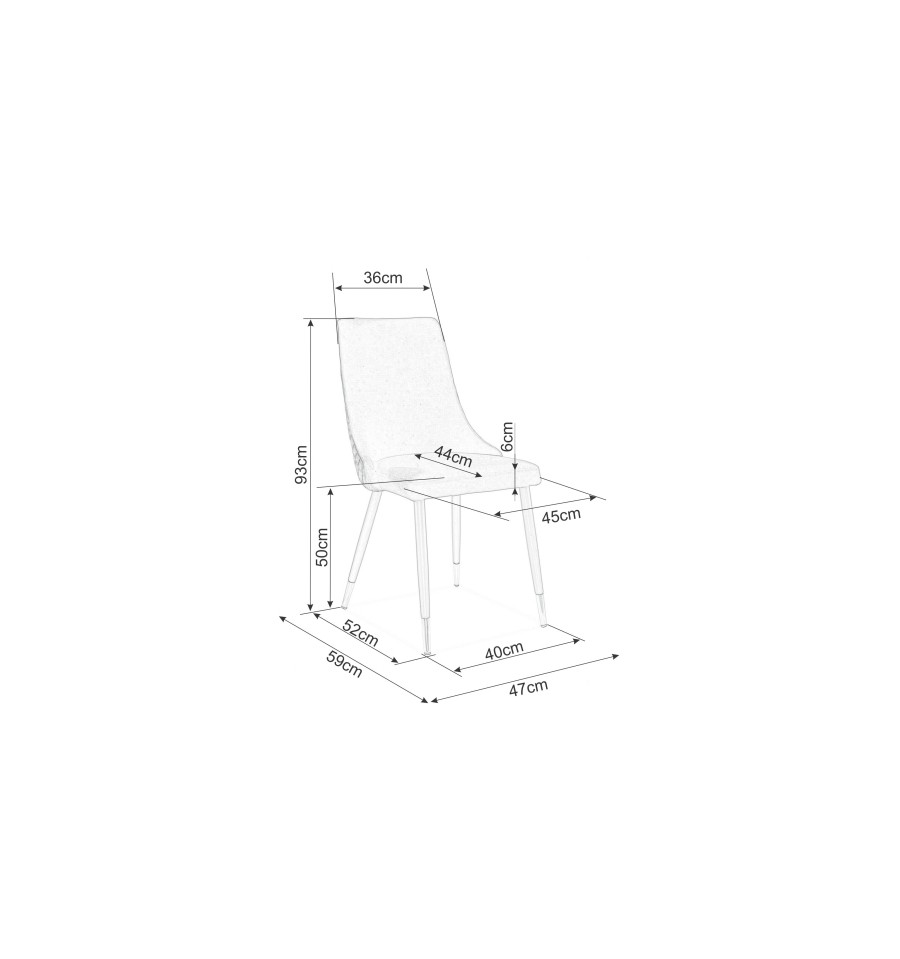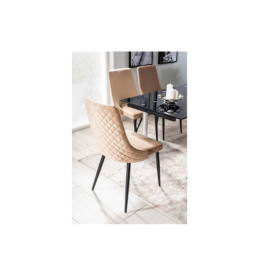 Enkel och modern stol i beige sammet. Ryggstödets baksida har dekorativ quiltning med diamantmönster.