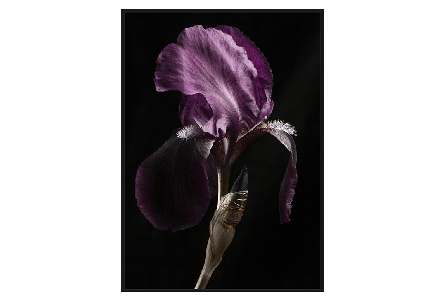 Tavlan föreställer en lila blomma och är omgiven av en amerikansk ram med ett litet avstånd mellan bilden och ramen. Den blir ett blickfång i vilket rum som helst.