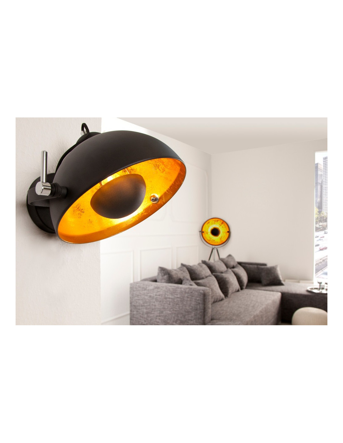vägglampa i svart och guld