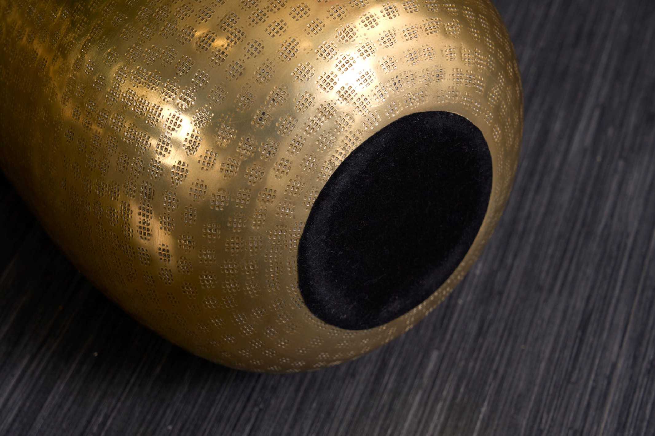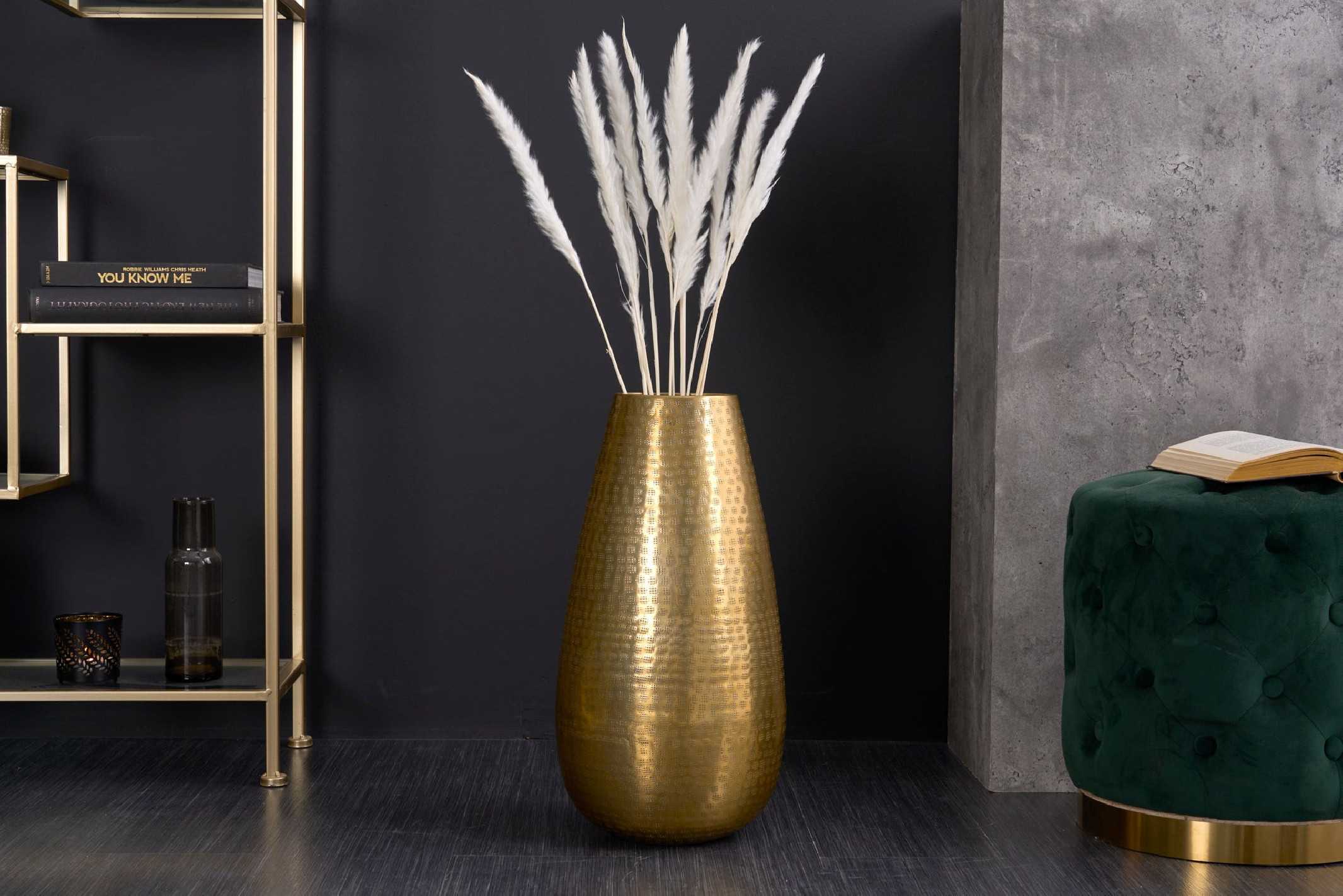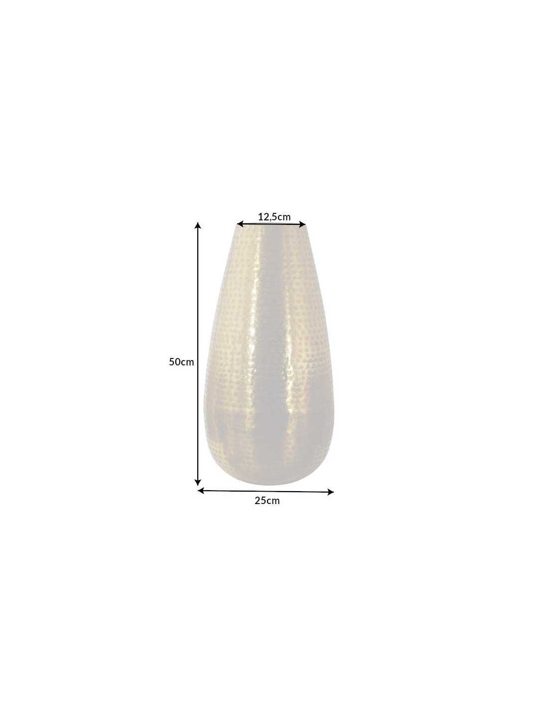 AURIGA-vasen lyfter genast känslan i rummet med sin skulpturala form och lyxiga guldfinish. Den reflekterar ljuset på ett magiskt sätt och blir ett naturligt blickfång på matbord, sideboard eller i fönstret. Tillverkad av en högkvalitativ metall-aluminiumlegering är denna dekorativa vas både robust och exklusiv. Den unika hammarslagseffekten skapar en levande struktur som ger djup och karaktär, perfekt för dig som söker en elegant vas i guld för modern inredning. Placera den som solitär designvas eller kombinera den med andra inredningsdetaljer för en harmonisk helhet. Mått: Bredd x Höjd x Djup 25 x 50 x 25 cm