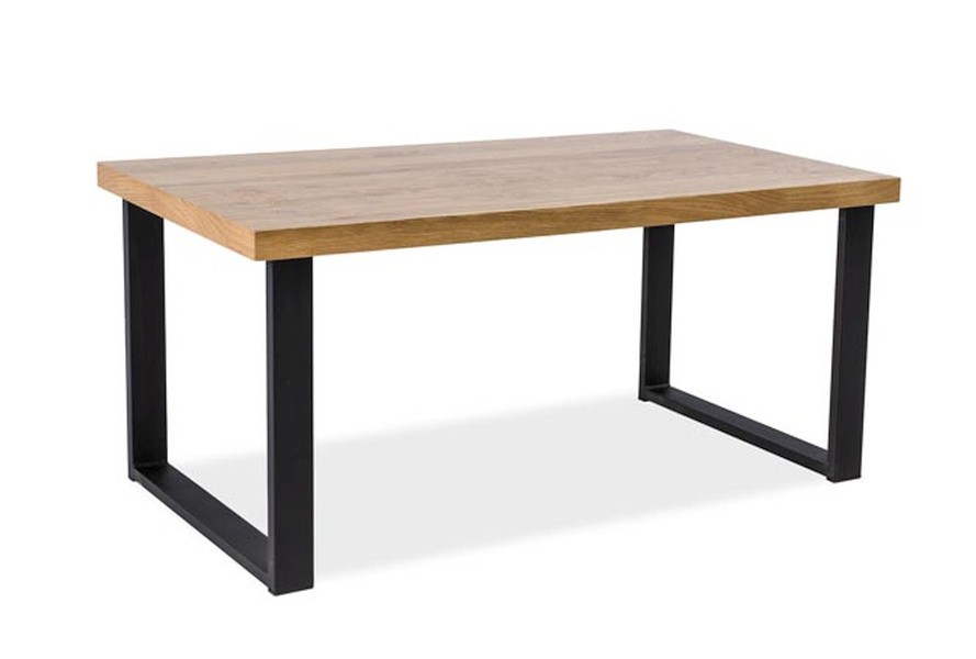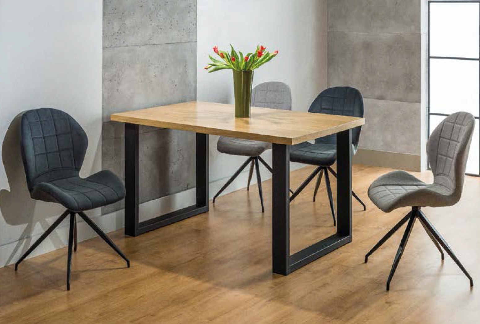 ODIN är ett matbord med den perfekta kombinationen av olika material, trendigt industriellt stål möter massivt ek. De inoljade skivan nästan flyter ovanför bordsbenen. Finns i två olika storlekar.