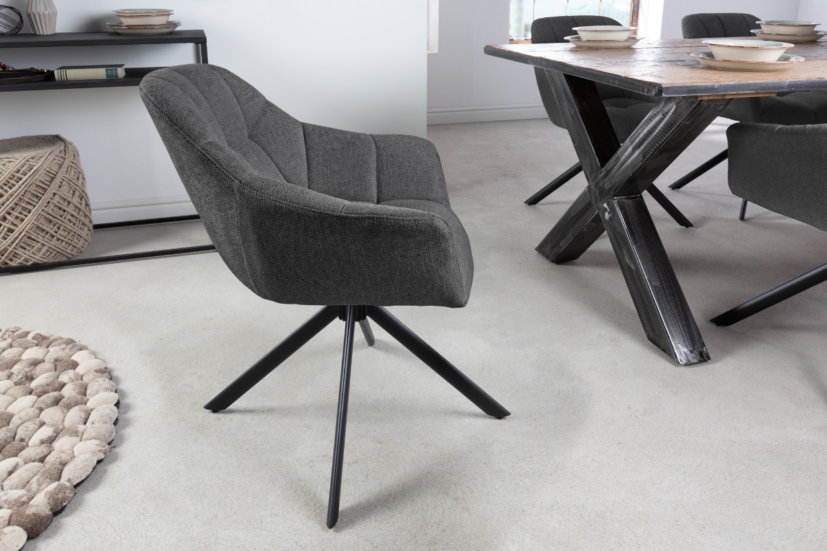 ELIN är en snurrbar stol med en retrolook och ett stilfullt utseende som skapar en ombonad känsla till alla utrymmen. Den ovanliga sömnaden och den bekväma klädseln gör detta till en dekorativ och bekväm sittplats för dig och dina gäster. Den stilrena formen gör att stolen passar in i många hem och i olika rum.